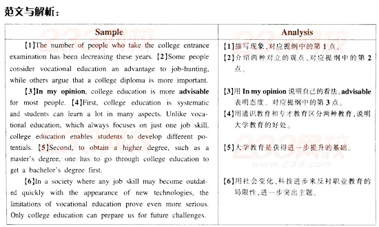 就本文来说,可以持“大学教育比职业教育重要”的观点,也可以持“职业教育比大学教育重要”的观点。无论主张哪一种观点,都要给出两到三条理由予以论证。