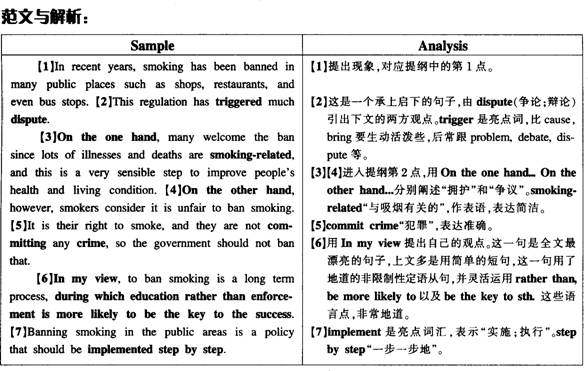 总的来说。拥护的理由好说,关键是提出什么样的争议。范文是从吸烟者的自由权利遭损害这个角度来说的。