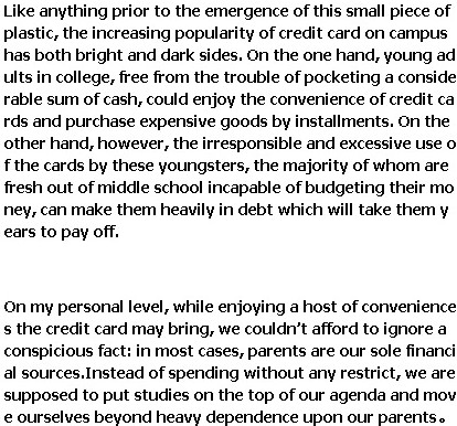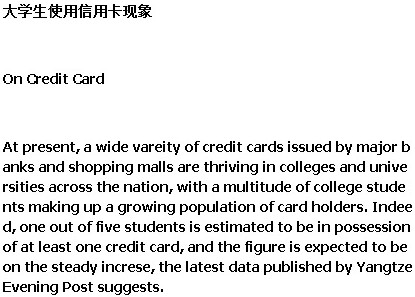 2014年12月大学英语四级作文预测范文:大学生用信用卡现象