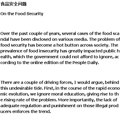 2014年12月大学英语四级作文预测范文:食品安全问题