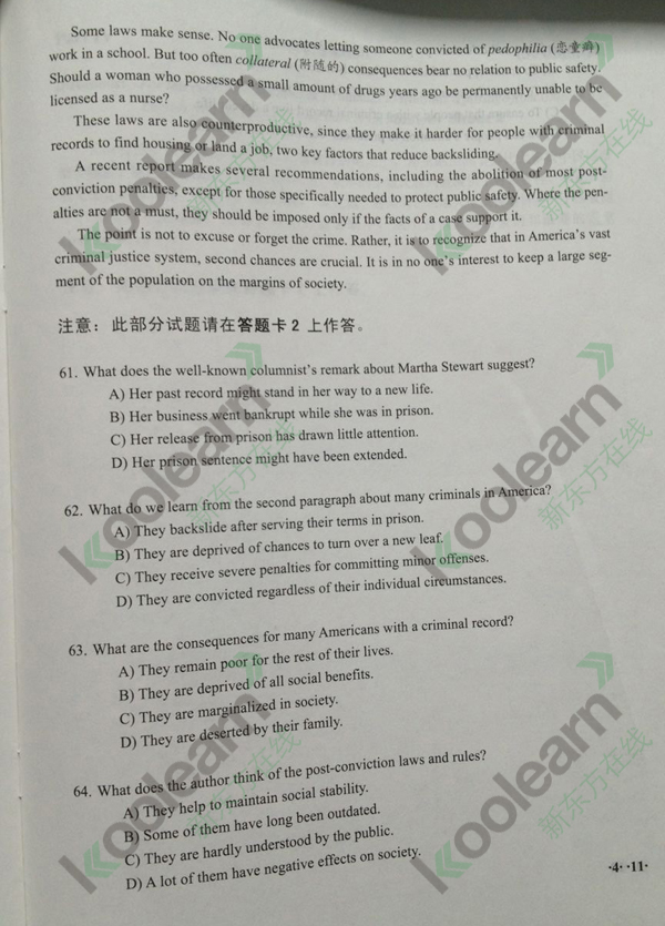 来源 : 网络 2024-06-15 14:14:48 关键字 : 英语四级阅读答案