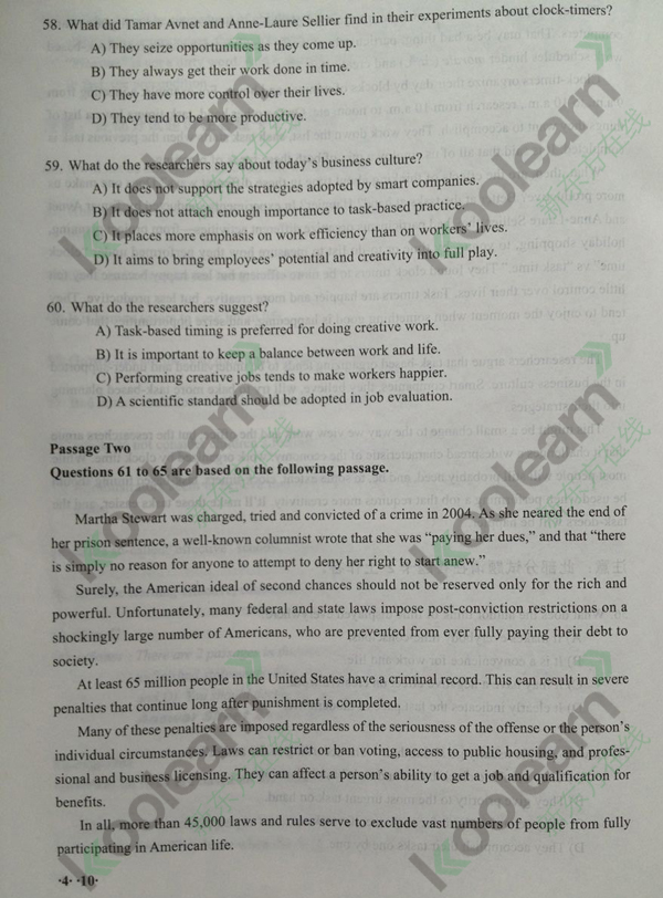 本文关键字: 2015年12月英语四级阅读答案