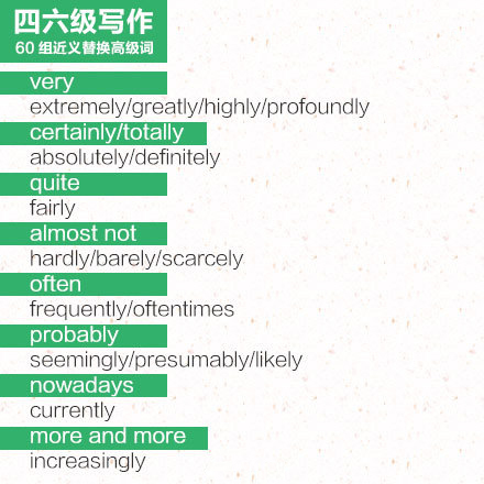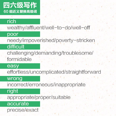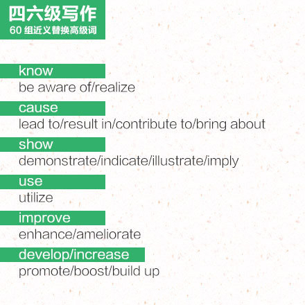 2016年6月英语四级作文60组近义替换词