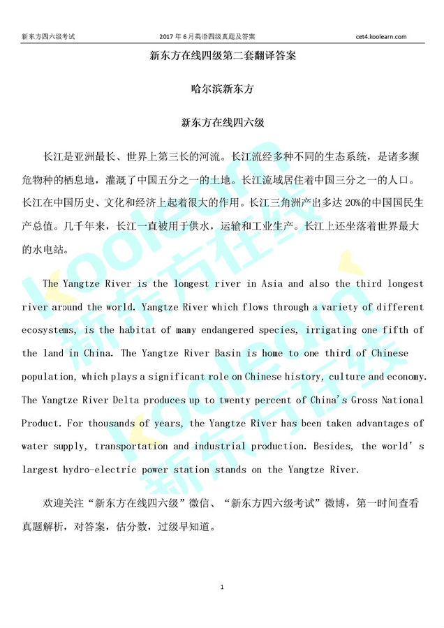 新东方在线考后发布2017年6月英语四级真题及答案,同时对真题进行直播解析,同学们可以提前收藏关注。点击【→→真题答案专题】查看更多2017年6月英语四级听力真题及答案、英语四级作文真题答案、英语四级阅读真题答案、英语四级翻译真题答案!祝考生同学们都能刷得高分!